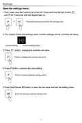- Page 9: The display shows the settings menu. Current settings and its currently set value.