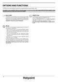 - Page 4: Options can be selected directly by pressing the corresponding button. If an option is not compatible with the selected program, the corresponding LED flashes rapidly 3 times and beeps will sound. A half load cycle may be used to save water, electricity, and detergent. Press the HALF LOAD button to deselect this option and remember to halve the amount of detergent. This setting allows you to optimize the performance of the program according to the type of detergent used. Press the START/PAUSE button for 3 seconds if you use combined detergents in tablet form. The start time of the program may be delayed for a period of time between 1 and 12 hours. Press the DELAY button to increase the time from the start of the selected wash cycle. Once the delay time has elapsed, the wash cycle begins. The DELAY function cannot be set once a wash cycle has been started.