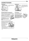 - Page 6: Daily use Check water connection The machine will switch off automatically during certain extended periods of inactivity to minimize electricity consumption. Check that the dishwasher is connected to the water supply and that the tap is open. Switch on the dishwasher Open the door and press the ON/OFF button. Load the racks If a wrong program was selected, it is possible to change it, provided that it has only just begun. Choose the program and customize the cycle Select the most appropriate program in accordance with the type of crockery and its soiling level. Start of wash cycle Open the door and place the crockery inside the dishwasher. Press the START/Pause button and close the door within 4 seconds. End of wash cycle The end of the wash cycle is indicated by beeps and by the flashing of the wash cycle number on the display. Advice and tips Before loading the baskets, remove all food residues from the crockery and empty the glasses. Tips on energy saving Washing tableware in a dishwasher usually consumes less energy and water than hand dishwashing.