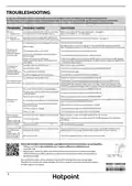 - Page 8: Troubleshooting In case your dishwasher doesn’t work properly, check if the problem can be solved by going through the following list. For other errors or issues please contact authorized After-sales Service. Spare parts will be available for a period of either up to 7 or up to 10 years. Salt indicator is lit. Refill reservoir with salt. Rinse aid indicator is lit. Refill dispenser with rinse aid. The dishwasher won’t start or does not respond to commands. Insert the plug into the socket. The dishwasher won’t drain. Check that the drain hose is not bent. The dishwasher makes excessive noise. The detergent has not been measured out correctly. The dishes are not clean. The spray arms cannot rotate freely. The dishwasher does not fill the water. Make sure there is water in the water supply or the tap is running.