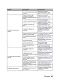 - Page 66: Problème Cause possible Solution possible Assurez-vous de charger correctement l'appareil. Voir la section Chargement de l'appareil. L'un des bras de pulvérisation frappe la vaisselle. Le programme sélectionné n'est pas adapté à la vaisselle chargée. Voir la section Programmes. Nettoyez les bras de pulvérisation. Voir la section Nettoyage des bras de pulvérisation. Les filtres sont bouchés. Assurez-vous de placer correctement les filtres. La pompe de purge d'eau est bouchée. Ajustez le niveau de consommation de produit de rinçage. Voir la section Réglage du niveau de consommation de produit de rinçage. Remplissez le réservoir de sel. Voir la section Remplissage de réservoir de sel.
