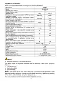 Page 61: Ficha de dados técnicos Ficha de máquina de lavar loiça doméstica em conformidade com a Diretiva UE 2019/2017 Modelo: JLLI023124 Classe de eficiência energética: E Consumo de energia do programa ecológico (EPEC): 0.804 kWh/ciclo Índice de eficiência energética (EEI): 55.8 Duração do programa ecológico (Tt): 3.58 h:min Emissões de ruído acústico aéreo: 47 dB(A) re 1 pW Altura: 85 cm Largura: 45 cm Profundidade: 60 cm O aparelho está em conformidade com as normas europeias e as diretivas na sua versão atual.