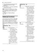 - Page 8: Additional functions The selected programme and the additional function will flash. The programme and the additional function are saved. The spray pressure in the bottom basket is increased and the maximum programme temperature held longer. You can find an overview of the additional functions that can be selected here. The appliance door opens automatically during the drying phase. Depending on the basic setting selected, automatic door opening is activated or deactivated by the additional function. The run time is shortened by 15% to 75% depending on the rinse programme. The additional function can be activated before the start of the programme and at any time when the programme is running. With the setting o02, automatic door opening cannot be deactivated in the Eco 50 °C program. Energy and water consumption are increased.