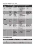 - Page 3: Programmes overview Programme type of load Degree of soil Options are not applicable to this programme. The programme adjusts to all degrees of soil. Self clean The programme cleans the appliance interior. Refer to Care and cleaning. Consumption values Water (l) Energy (kWh)
