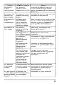 - Page 27: Problem: Klopfen im Geschirrspüler. Mögliche Ursache: Der Sprüharm blockiert durch Gegenstände im Korb. Lösung: Unterbrechen Sie das Programm und verstellen Sie die Gegenstände. Problem: Klapperndes Geräusch im Geschirrspüler. Mögliche Ursache: Geschirr wurde nicht richtig platziert. Lösung: Unterbrechen Sie das Programm und verstellen Sie das Geschirr. Klopfgeräusche haben keinen Einfluss auf die Funktion des Geschirrspülers. Im Zweifelsfall wenden Sie sich an einen qualifizierten Installateur. Problem: Das Geschirr ist nicht sauber. Mögliche Ursache: Geschirr wurde nicht richtig eingelegt. Lösung: Siehe Teil II „Vorbereitung und Befüllung mit Geschirr“. Das Programm war nicht wirksam genug. Lösung: Wählen Sie ein intensiveres Programm. Es wurde nicht genügend Reinigungsmittel freigesetzt. Lösung: Verwenden Sie mehr Spülmittel oder wechseln Sie das Spülmittel. Die Gegenstände blockieren die Bewegung der Sprüharme. Lösung: Verstellen Sie die Gegenstände, damit sich die Sprüharme frei drehen können. Die Filtereinheit ist nicht sauber oder unsachgemäß installiert. Lösung: Reinigen Sie das Filter oder installieren Sie es ordnungsgemäß. Auf dem Glas ist ein Belag sichtbar. Ursache: Kombination aus weichem Wasser und zu viel Spülmittel. Lösung: Verwenden Sie weniger Spülmittel und wählen Sie einen kürzeren Gläserspülgang. In Gebieten mit hartem Wasser können sich Kalkflecken auf Geschirr und Gläsern bilden. Lösung: Verwenden Sie mehr Spülmittel.