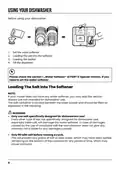 - Page 60: Using your dishwasher Before using your dishwasher: Set the water softener Loading the salt into the softener Loading the basket Fill the dispenser Always use salt intended for dishwasher use. The salt container is located beneath the lower basket. Only use salt specifically designed for dishwasher use. Only fill with salt before running a cycle.