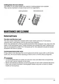 - Page 63: Folding back the rack shelves The spikes of the lower basket are used for holding plates and a platter. They can be lowered to make more room for large items. The door seals should be checked after each wash cycle and, if necessary, cleaned with a soft damp cloth to remove food residue. Food and drink residues may drip onto the sides of the dishwasher door. Any deposits should be wiped off before the door is closed. The control panel should be wiped with a soft damp cloth only. We recommend cleaning at least once a month and as required. To avoid penetration of water into the door lock and electrical components, do not use a spray cleaner of any kind. Never use abrasive cleaners or scouring pads on the outer surfaces because they may scratch the finish.