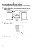 - Page 70: Built-in installation for the integrated model Selecting the best location for the dishwasher The installation position of the dishwasher should be near the existing inlet and drain hoses and power cord. Less than 5 mm between the top of the dishwasher and cabinet and the outer door aligned to cabinet. If the dishwasher is installed at the corner of the cabinet, there should be some space when the door is opened. Minimum space of 50 mm is required for the door of the dishwasher. Depending on where your electrical outlet is, you may need to cut a hole in the opposite cabinet side.