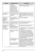 - Page 75: Problem Possible causes What to do Stained tub interior. Detergent with colourant may have been used. Make sure that the detergent has no colourant. White film on inside surface. Hard water minerals. To clean the interior, use a damp sponge with dishwasher detergent and wear rubber gloves. There are rust stains on cutlery. The affected items are not corrosion resistant. Avoid washing items that are not corrosion resistant in the dishwasher. A program was not run after dishwasher salt was added. Traces of salt have gotten into the wash cycle. Always run a wash program without any crockery after adding salt. The lid of the softener is loose. Check the softener lid is secure. Knocking noise in the dishwasher. A spray arm is knocking against an item in a basket. Interrupt the program and rearrange the items which are obstructing the spray arm. Rattling noise in the dishwasher. Items of crockery are loose in the dishwasher. Interrupt the program and rearrange the items of crockery. The dishes are not clean. The dishes were not loaded correctly. See PART II „Preparing And Loading Dishes“. The program was not powerful enough. Select a more intensive program. Not enough detergent was dispensed. Use more detergent, or change your detergent. Items are blocking the movement of the spray arms. Rearrange the items so that the spray can rotate freely.