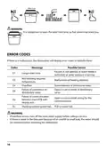 - Page 157: VÝSTRAHA Je nebezpečné otevírat dveře za běhu cyklu, protože může uniknout horká pára a způsobit opaření. KÓDY PORUCH Pokud dojde k poruše, myčka zobrazí kód poruchy. E1 - Přívod vody není otevřen, je omezen přívod vody nebo je příliš nízký tlak vody. E3 - Nedosažení požadované teploty. E4 - Porucha topného prvku. E8 - Přetečení. Ed - Porucha komunikace mezi hlavní deskou plošných spojů a displejem PCB. Ec - Porucha PCB nebo motoru. VÝSTRAHA Pokud dojde k přetečení, vypněte ihned hlavní přívod vody dříve, než zavoláte servis. Pokud je v základní vaně voda z důvodu přeplnění nebo malého úniku, měla by být voda před opětovným spuštěním myčky odstraněna.
