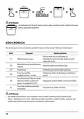 - Page 134: Problém: Vnitřní vana je znečištěna. Možná příčina: Mohl být použit mycí prostředek s barvivem. Náprava: Ujistěte se, že použitý mycí prostředek neobsahuje žádné barvivo. Bílý povlak na vnitřním povrchu: Usazené minerály z tvrdé vody. K vyčištění interiéru použijte vlhkou houbu s mycím prostředkem do myčky nádobí. Na příborech jsou skvrny od rzi: V myčce na nádobí neumývejte předměty, které nejsou odolné vůči korozi. Po přidání soli do myčky nebyl ihned spuštěn program: Po přidání soli vždy spusťte mycí program bez nádobí. Víčko změkčovače je uvolněné: Zkontrolujte, zda je víčko změkčovače dobře utaženo. Zvuk klepání v myčce na nádobí: Přerušte program a přeskládejte předměty, které brání v pohybu ostřikovacího ramene. Nádobí není čisté: Nádobí nebylo správně vloženo.