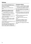 - Page 31: Changing settings allows you to alter the dishwasher’s controls to suit changing requirements. Use the sensor buttons to select the menu option you want to change and confirm your selection with OK. The settings can be altered at any time. Sub-menu options that have already been selected will have a check beside them. To open the settings menu, turn the dishwasher on with the sensor button if it is turned off. Select the setting you want using the sensor buttons and confirm with OK. Touch the “Additional programs/Settings” sensor button to access more options. To exit a sub-menu, use the Back sensor button. To close the settings menu, touch the Back sensor button. For further information about the display functionality, see “Display functions” under “Guide to the appliance.”