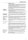 - Page 3: Installation notes For safe installation and commissioning of the dishwasher, please read the installation plan, the service documentation, the installation sheet, and the operating instructions. This installation plan includes the dimensions of the appliance, the technical data, and the requirements to be met on site for the installation of the dishwasher. This dishwasher must only be installed and commissioned by the Miele Customer Service Department, a Miele authorised dealer, or a suitably qualified specialist. Installation should only be performed in accordance with valid regulations, relevant standards, and health and safety codes. Condensate can build up in the area surrounding the dishwasher. Any furniture and fittings in the room must therefore be suitable for purpose. The vapour barrier film supplied protects the worktop from damage caused by steam when the door is opened. All work on the electrical connection must be carried out by the Miele Customer Service Department, an authorised Miele dealer, or a qualified electrician. The dishwasher should be connected to the electricity supply via a socket. If the dishwasher is hard-wired to the power supply, a power switch capable of disconnecting the dishwasher at all poles must be installed on site. For increased safety, it is recommended to protect the dishwasher with a residual current device (RCD) with a trip current of 30 mA.