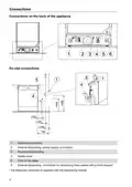 - Page 6: Connections on the back of the appliance include various on-site connections. Electrical connection is necessary for the appliance to function. External dispensing requires a power supply connection. Equipotential bonding is important for safety. Waste water management is a key consideration. Cold or hot water connections are required for operation. There is a connection for the dispensing hose sealed with a blind stopper. The dispenser connector is supplied with the dispensing module.