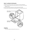 Page 26: Step 5. Levelling the dishwasher Dishwasher must be level for proper dish rack operation and wash performance. Place a spirit level on door and rack track inside the tub to check that the dishwasher is level. Level the dishwasher by adjusting the three levelling legs individually. When level, pay attention not to let the dishwasher tip over. Check level front to back. Check level side to side. The maximum adjustment height of the feet is 50 mm.
