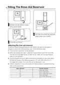 Page 42: Function of the rinse aid and detergent The rinse aid is released during the final rinse to prevent water from forming droplets on your dishes, which can leave spots and streaks. It also improves drying by allowing water to roll off the dishes. Your dishwasher is designed to use liquid rinse aids. Only use branded rinse aid for dishwasher. Never fill the rinse aid dispenser with any other substances. The regularity of the dispenser needing to be refilled depends on how often dishes are washed. The Low Rinse Aid indicator will be lit when more rinse aid is needed. Use only detergent specifically made for dishwashers. Keep your detergent fresh and dry. Dishwasher detergent is corrosive.