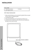 - Page 32: Installation You'll need a Phillips-head screwdriver, screws A ST4 x 20 (2), and top mounting clips (2). Step 1: Securing the dishwasher to the countertop For countertops made of wood or materials that won’t be damaged by drilling, use Method 1. For countertops made of granite, marble, or other materials that could be damaged by drilling, use Method 2. If the gap between the control panel and the cabinet is less than 7/16 (11 mm), use Method 2. Method 1 involves inserting the long top mounting clips into the slot, bending the brackets to secure them to the dishwasher tub, and securing the dishwasher to the countertop using the provided screws. Important: Drive the screws straight and flush to avoid scratching the control panel and interfering with the door closing.